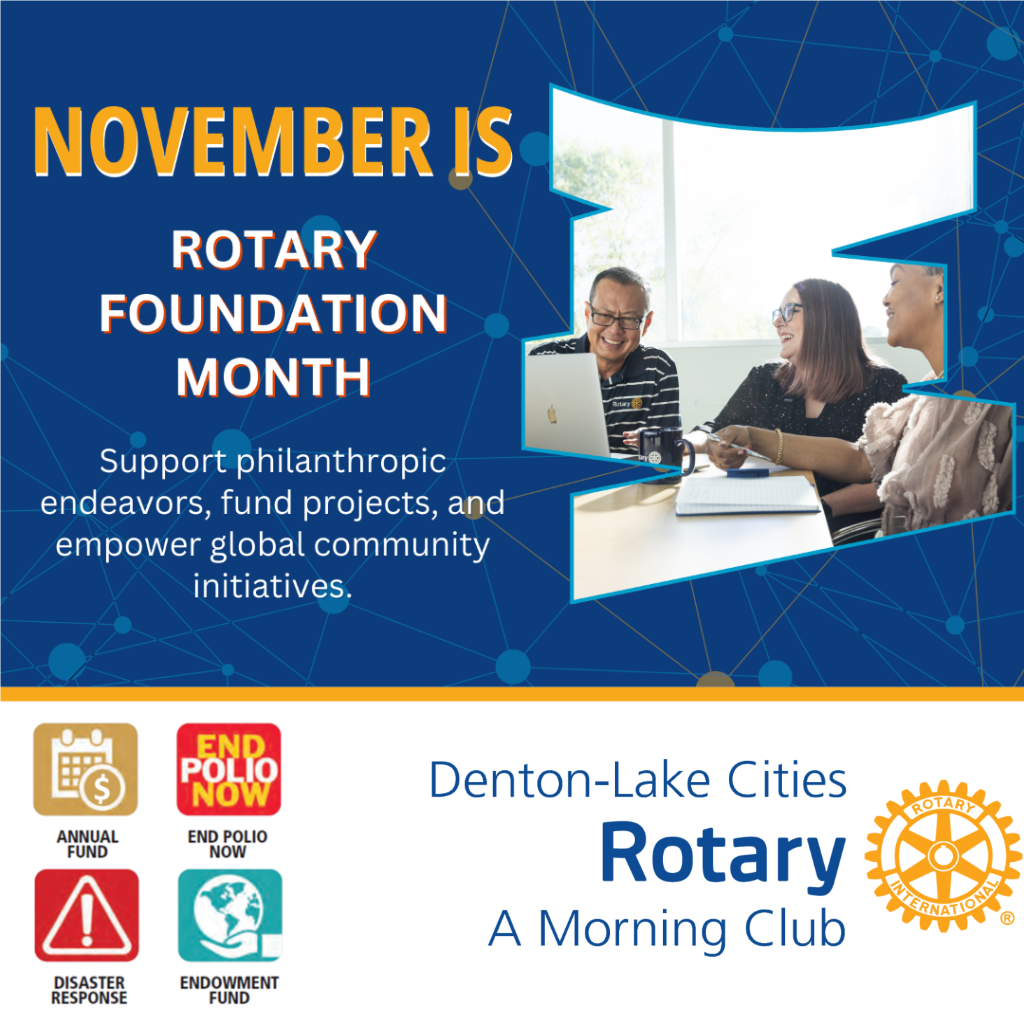 As we pick up the final flags of the 2025 season, we are grateful for our 2851 flag recipients. Because of the revenues derived from these subscriptions, our Rotary club has been able to support local and international service projects such as Shelterbox, Denton Police Youth Summer Program, Dictionaries for 3rd graders, Kids Against Hunger, Fill the Pantry, BSA Troop 192 Argyle, 424 Lake Dallas, Friends of the Family, Street Side Showers, Interfaith Ministries, Adoption Fair, Spirit of Christmas Food Drive and other similar projects throughout the year.