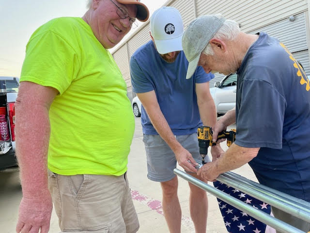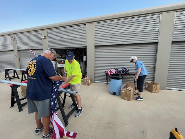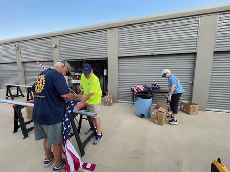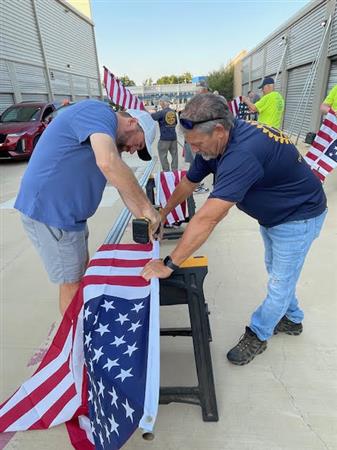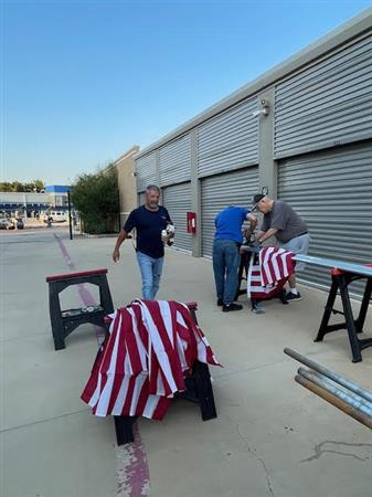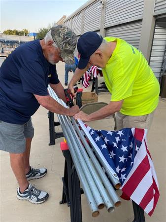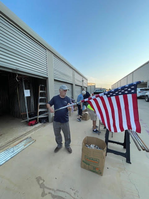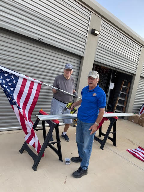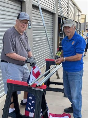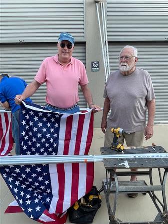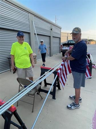 Part of the service we provide flag subscribers is making sure that the flag displayed on their property each holiday is in the best possible condition. This means periodic inspection of each flag and replacing damaged staffs and flags where needed. Today is one of those Flag Work Days. Thanks to all the members who worked so hard to make our subscribers of the flag in front of their home.