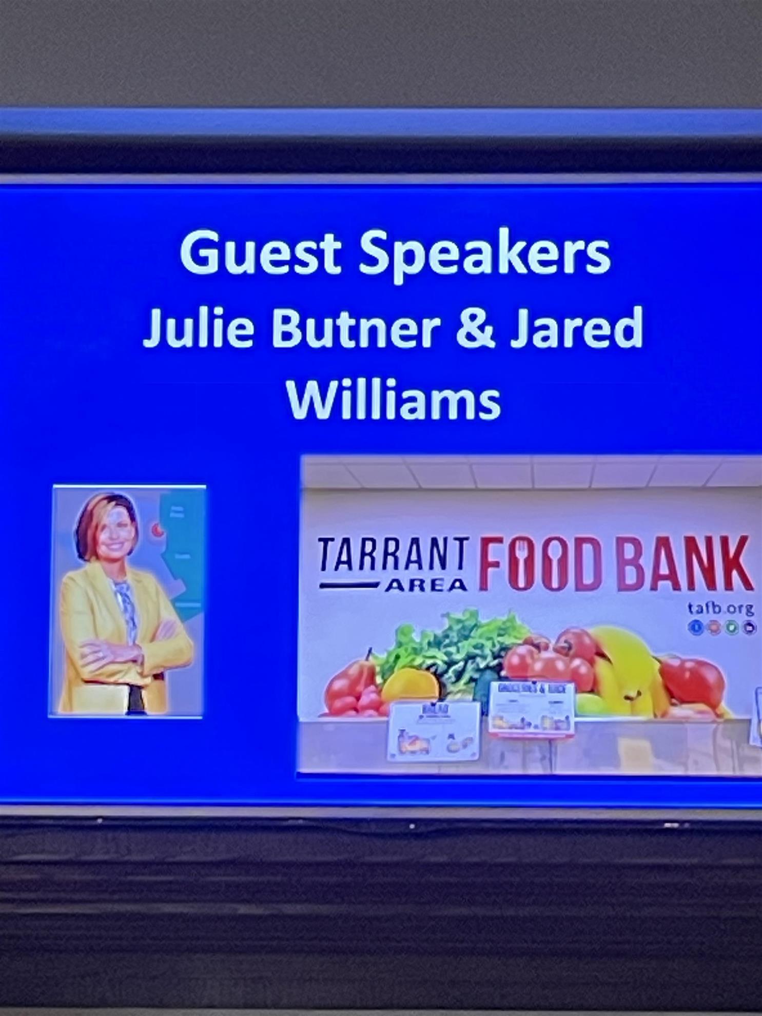 Guest speakers Julie Butner and Jared Williams provided members with an exceptional presentation on serving the food-insecure individuals in our North Texas communities.